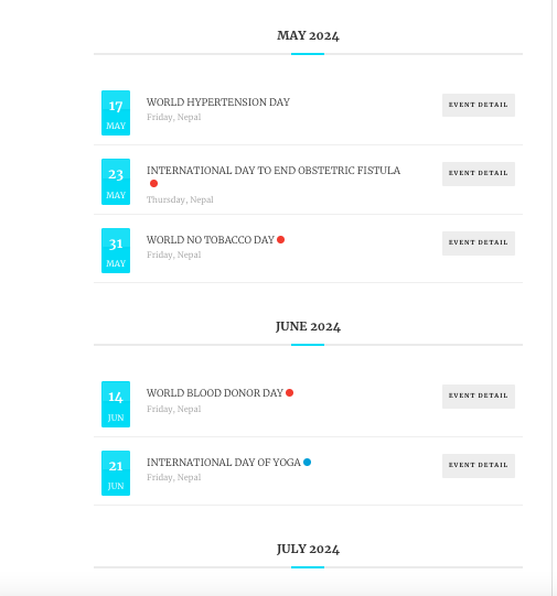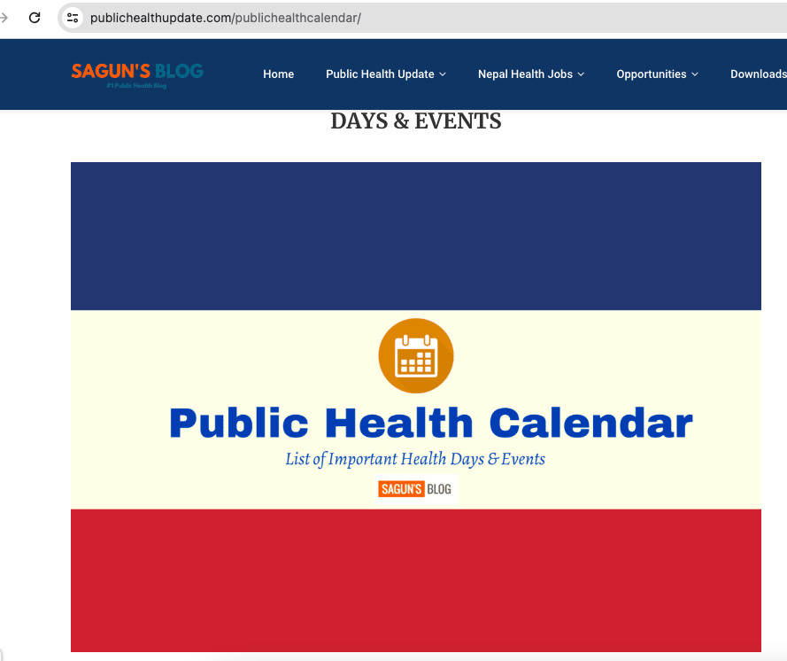 In Nepal, as in many low-resource settings, women face substantial barriers in accessing timely, adequate, and affordable healthcare. Often, families prioritize the healthcare needs of children and men over those of women, who are usually the primary caregivers. Travel time and costs further discourage women from accessing health services, as they prioritize household responsibilities. Women with low socioeconomic status in Nepal are at a higher risk of exposure to non-communicable disease (NCD) risk factors due to gender norms. Additionally, women and girls are less likely to receive adequate education compared to men, limiting their capacity to protect themselves from other NCD risk factors, including unhealthy diets, air pollution, tobacco, and alcohol use. In Nepal, addressing the issue of NCDs requires comprehensive health education and awareness campaigns. Implementing educational programs to raise awareness about the risk factors associated with NCDs, such as unhealthy diets, physical inactivity, and tobacco use is crucial. Developing preventive measures tailored to address the specific needs of vulnerable groups, such as widow/separated women, Dalit women, and reproductive-age women, is also essential. Our mobile app will contribute to raising awareness and spreading accurate health information to all Nepalese through a calendar-based approach. By providing the right health information to everyone, we aim to enhance health-related behaviors or perceptions of community people especially women and girls on NCD prevention and treatment. Use of digital technology in the health sector is rapidly expanding, with people increasingly relying on the internet and mobile phones for information. In this technological era, high-quality digitized health platforms and mobile applications are essential for increasing self-awareness and reducing the burden of NCDs. Our initiative aims to introduce a user-friendly calendar-based mobile app to inform, educate, and engage Nepali people, particularly women and girls, to prevent NCDs, promote health, and prolong lives. The Public Health Calendar integrates the concept of a calendar into health interventions, providing daily information on health conditions, such as sugar on Sunday, meals on Monday, and weight on Wednesday, to raise awareness and sensitize people about health and well-being.