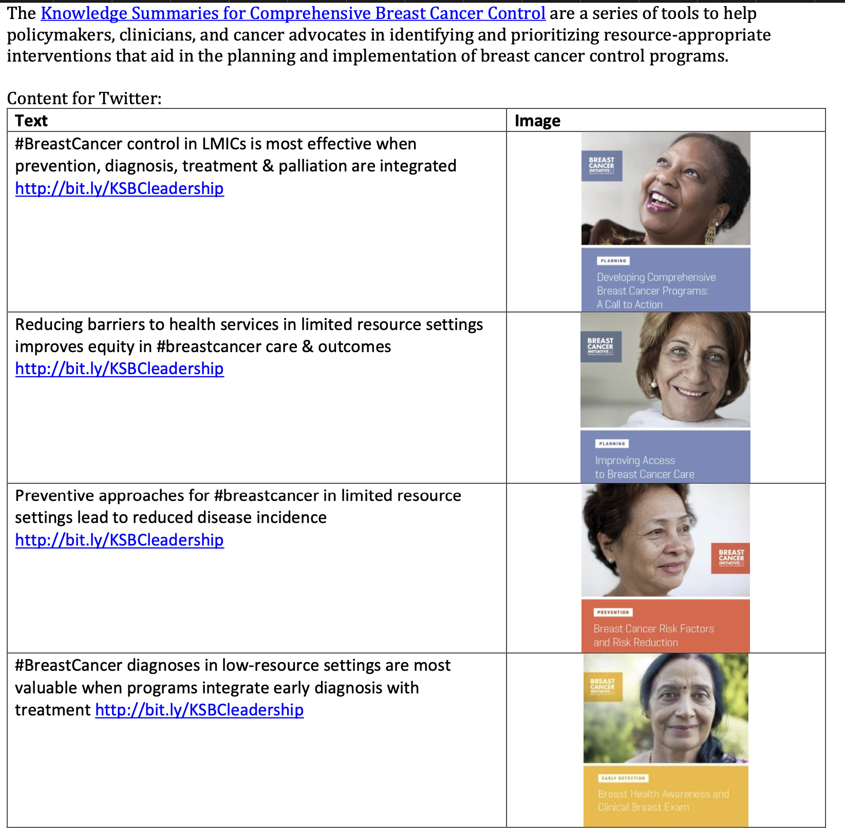 Breast Health Global Initiative, National Cancer Institute, UICC and PAHO have developed a series of 16 brief publications, called Breast Cancer Knowledge Summaries.The Knowledge Summaries for breast cancer control provide resource-stratified pathway...