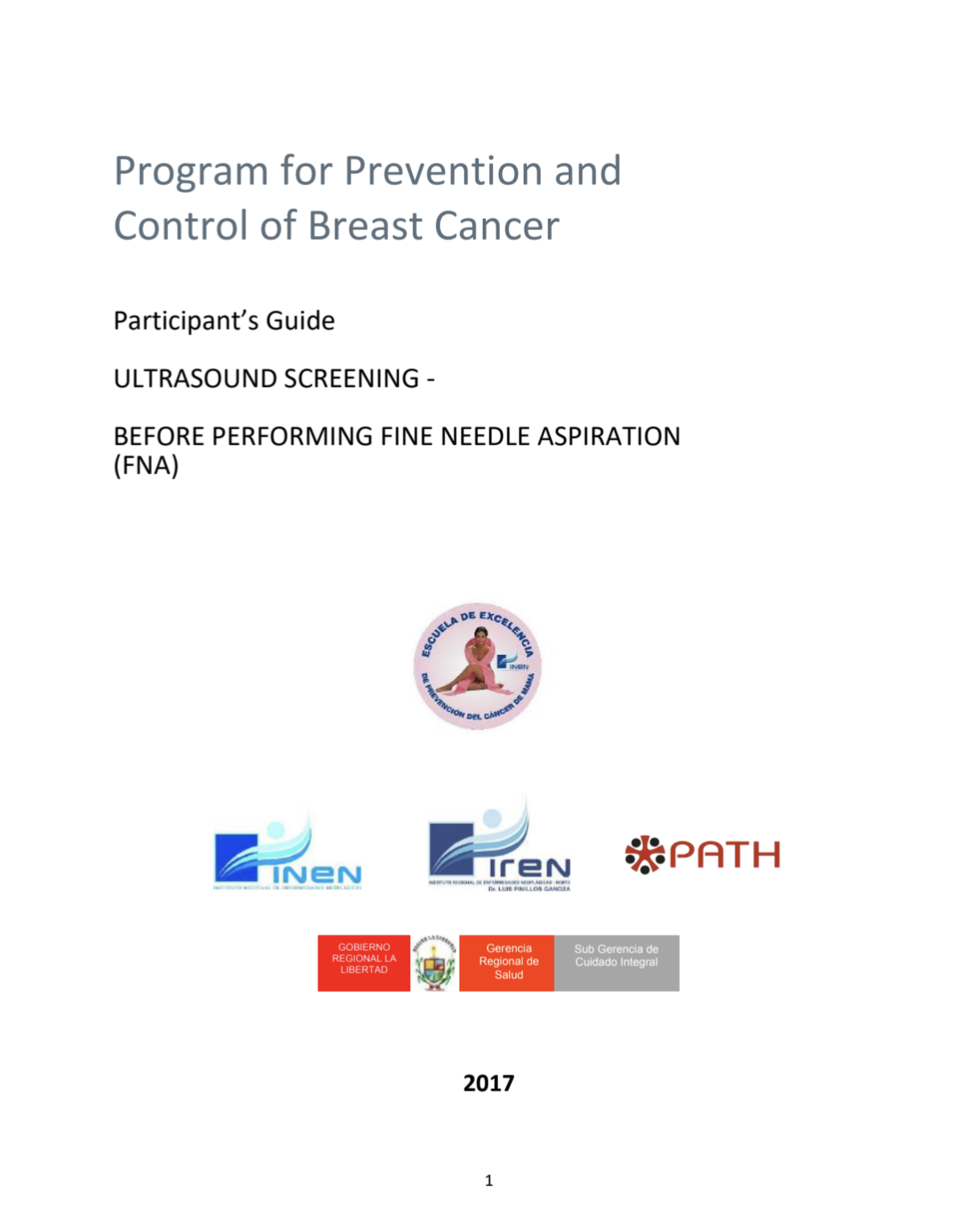 Program for Prevention and Control of Breast Cancer|2017 Participant Guide to Ultrasound Screening before performing FNA
